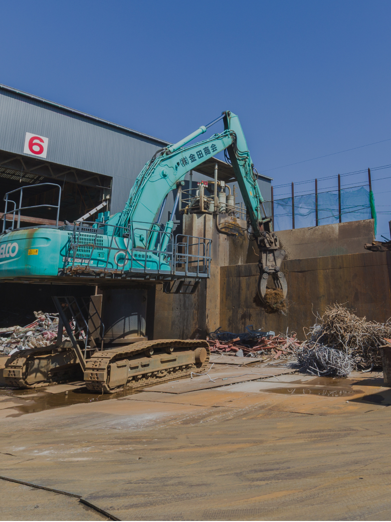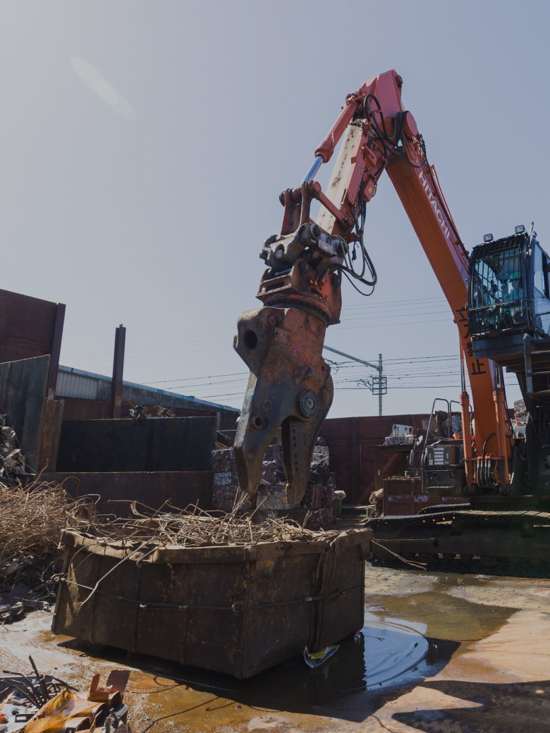 私たちは、産業活動の副産物として排出される金属スクラップを仕入れ、選別・切断などの加工を行い、環境負荷の少ない「製鋼原料」と呼ばれる形にして製鋼所へ届けています。
