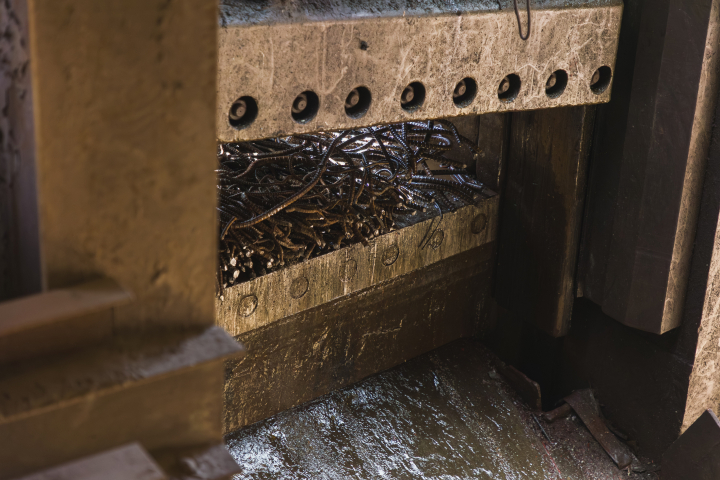 厚い鉄板やH鋼など、大型の鉄くずを強力な力で切断します。