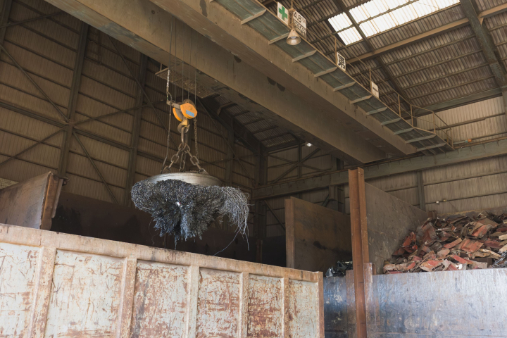 磁力による吸引と切断機能を備えた多機能重機。鉄系金属の効率的な収集と切断を同時に行い、作業効率を向上させます。