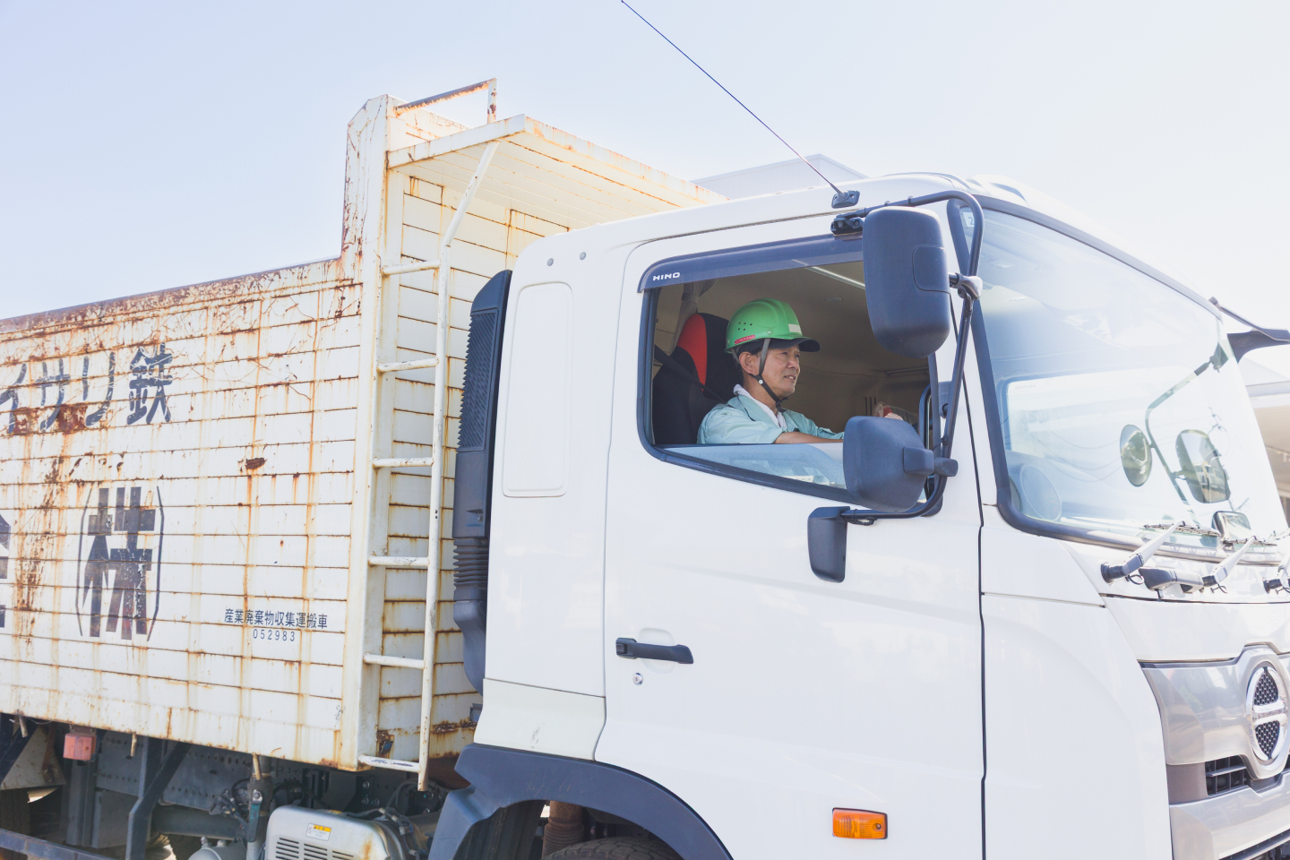 大量のスクラップを一度に運搬するための、荷台の大きな車両です。解体現場や工場からの定期回収で主に稼働しています。